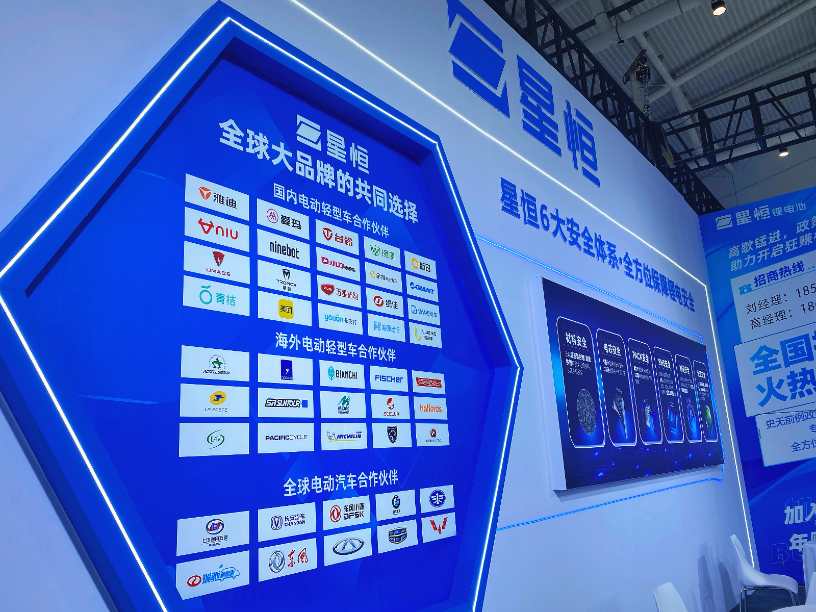 展會現場,星恒全明星鋰電家族璀璨登場,64100、76100、76140、76200等電三鋰電池旗艦產品,憑借全面領先優勢成為全場矚目的焦點。